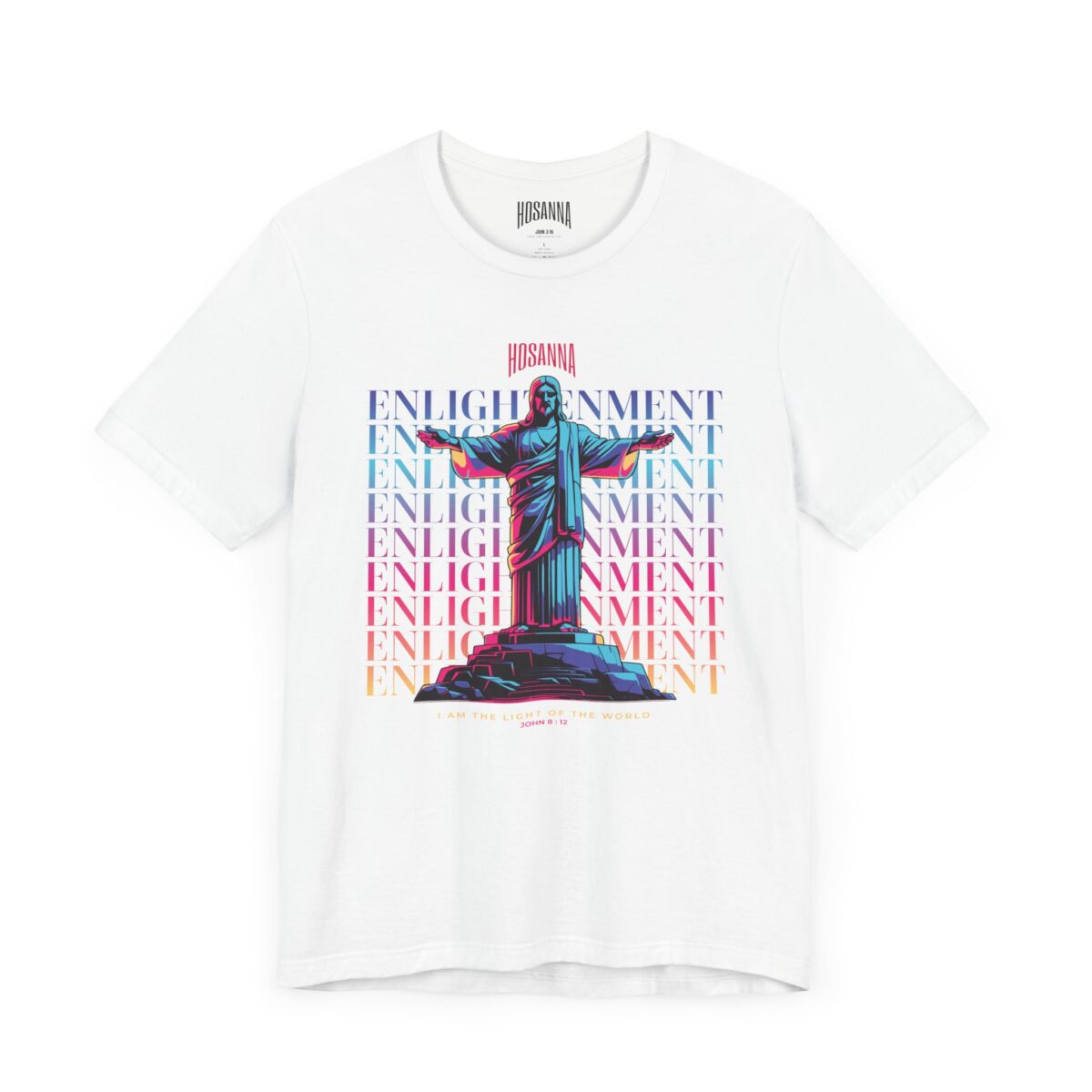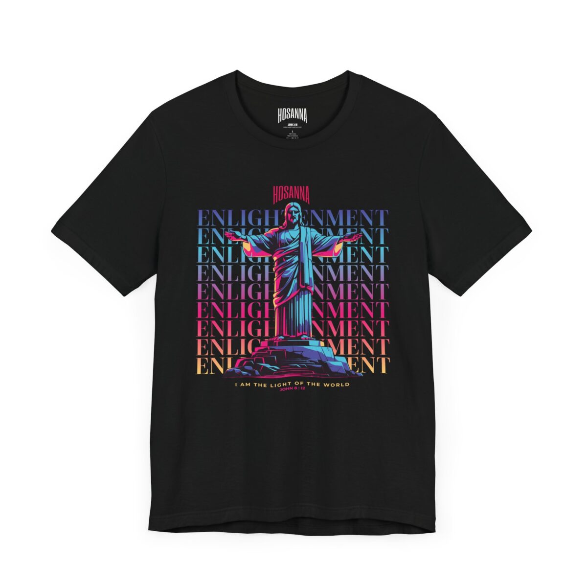 Shine your faith boldly. The Enlightenment ‘I Am the Light of the World’ Unisex Jersey Tee by Hosanna Christian Clothing is a powerful reminder of Christ’s words in John 8:12. Crafted for comfort and everyday wear, this tee blends modern style with deep spiritual meaning. A perfect conversation starter for those who walk in the light.