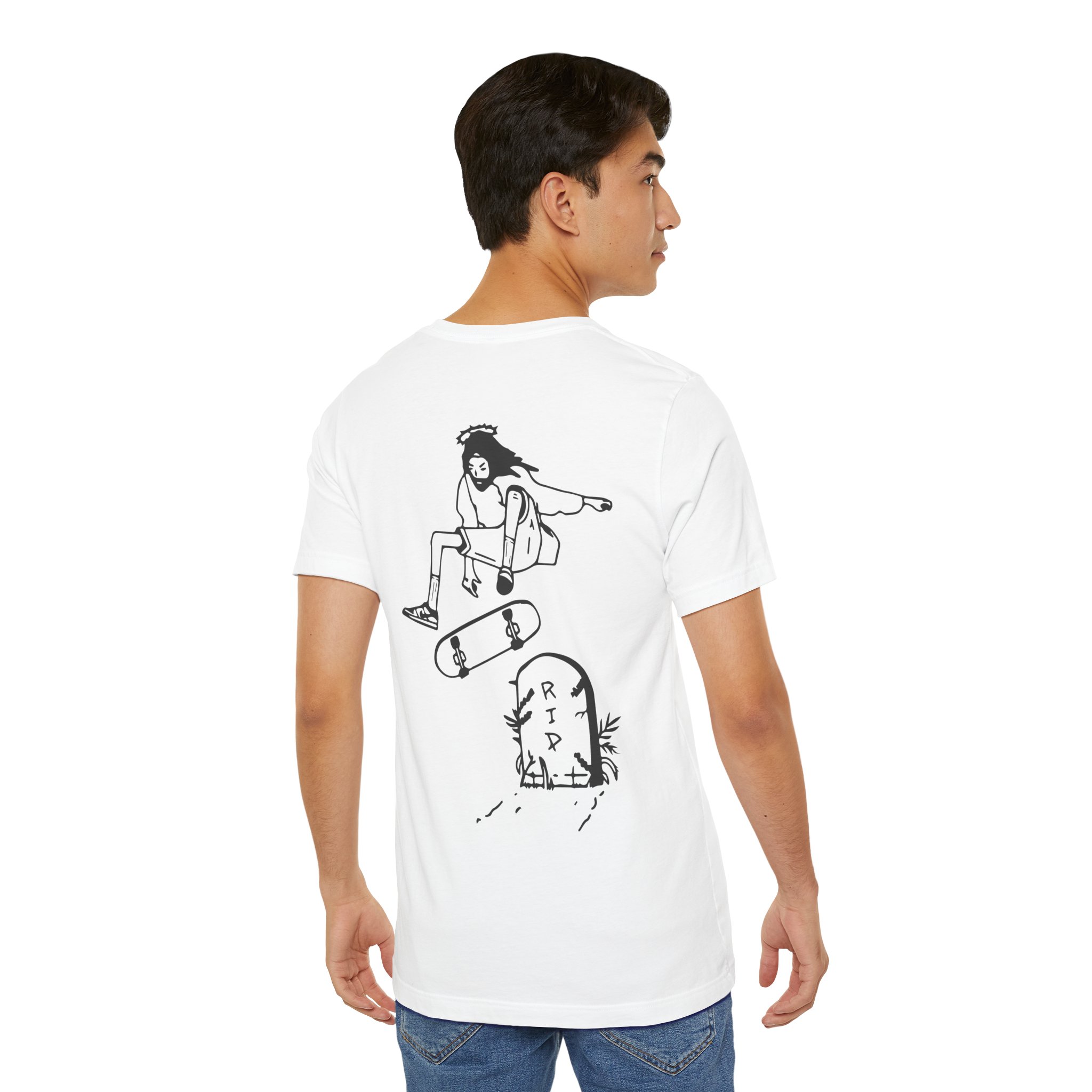 For those who ride with faith, the “Skater (R.I.P.)” Short Sleeve Tee combines the carefree spirit of skateboarding with a reminder of eternal life through Christ. Perfect for streetwear-inspired looks.
