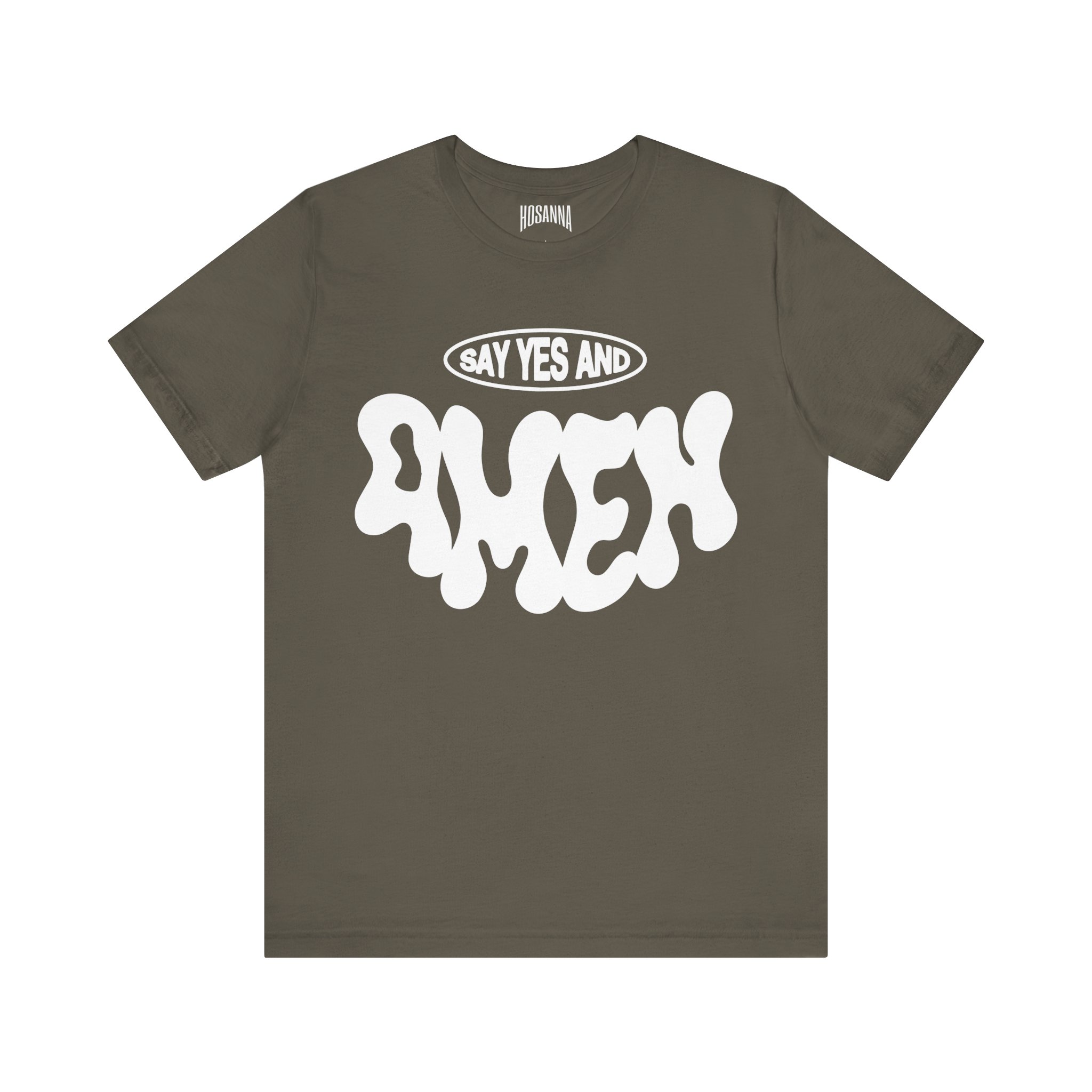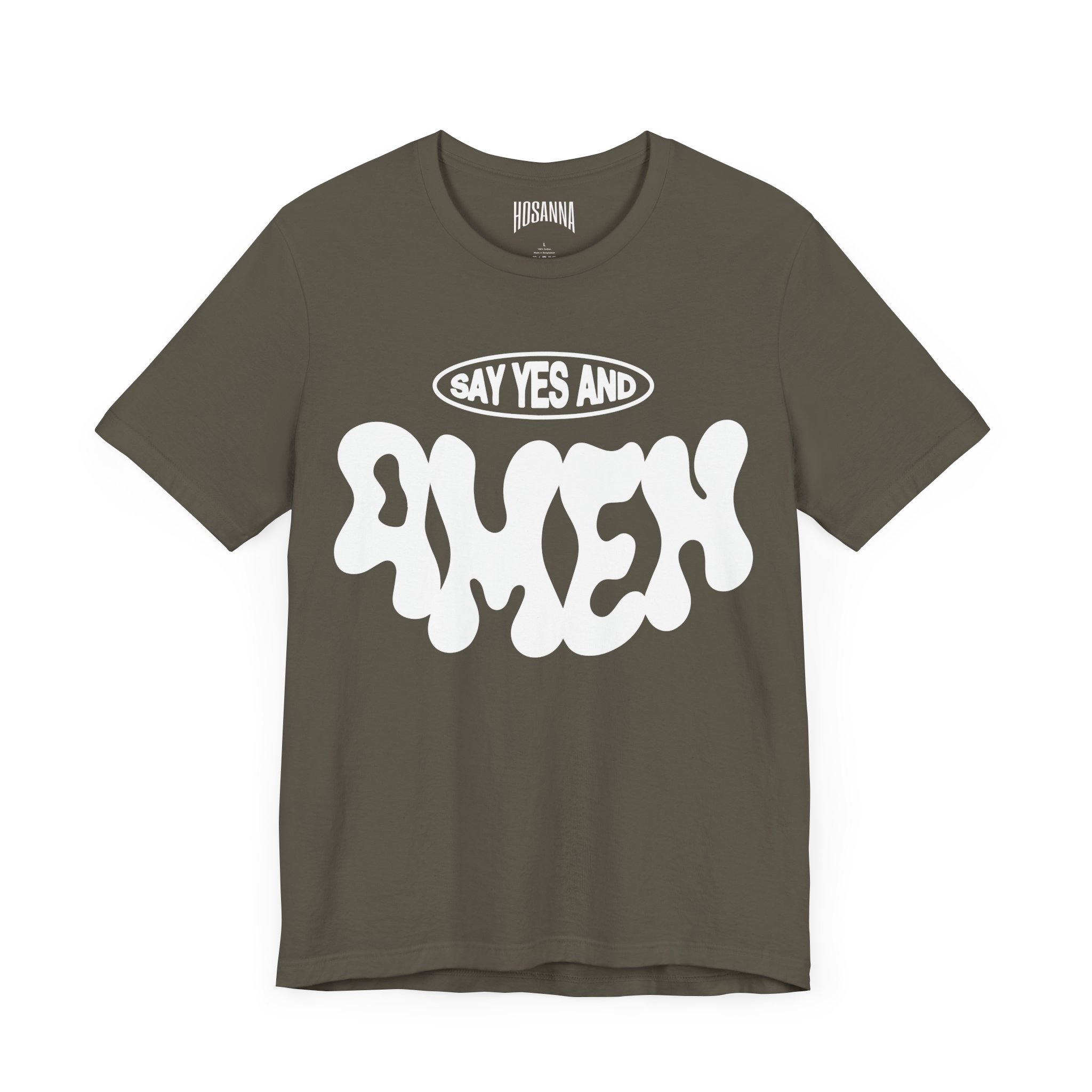 This bold, artistic design calls you to say “Yes” to faith and “Amen” to the promises of God. The thick, hand-drawn lettering adds a creative and powerful touch, perfect for those who live boldly for their beliefs.