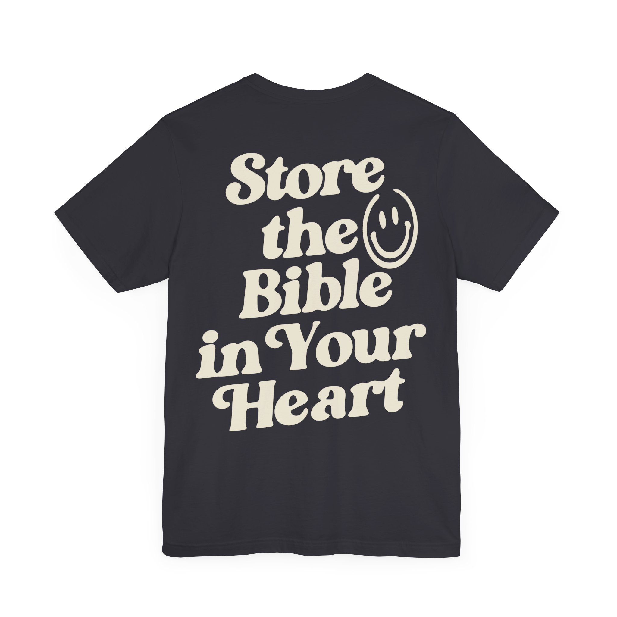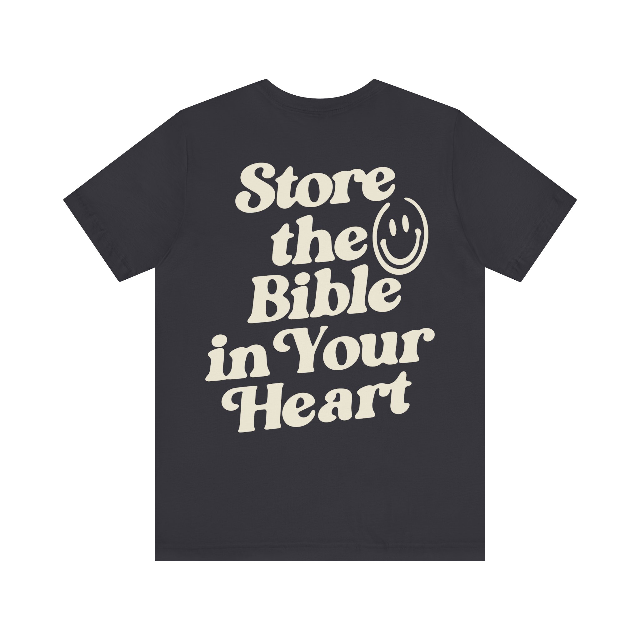 This tee features an uplifting reminder to keep the Word of God close to your heart. With playful typography and a charming design, it encourages a life guided by faith and scripture.