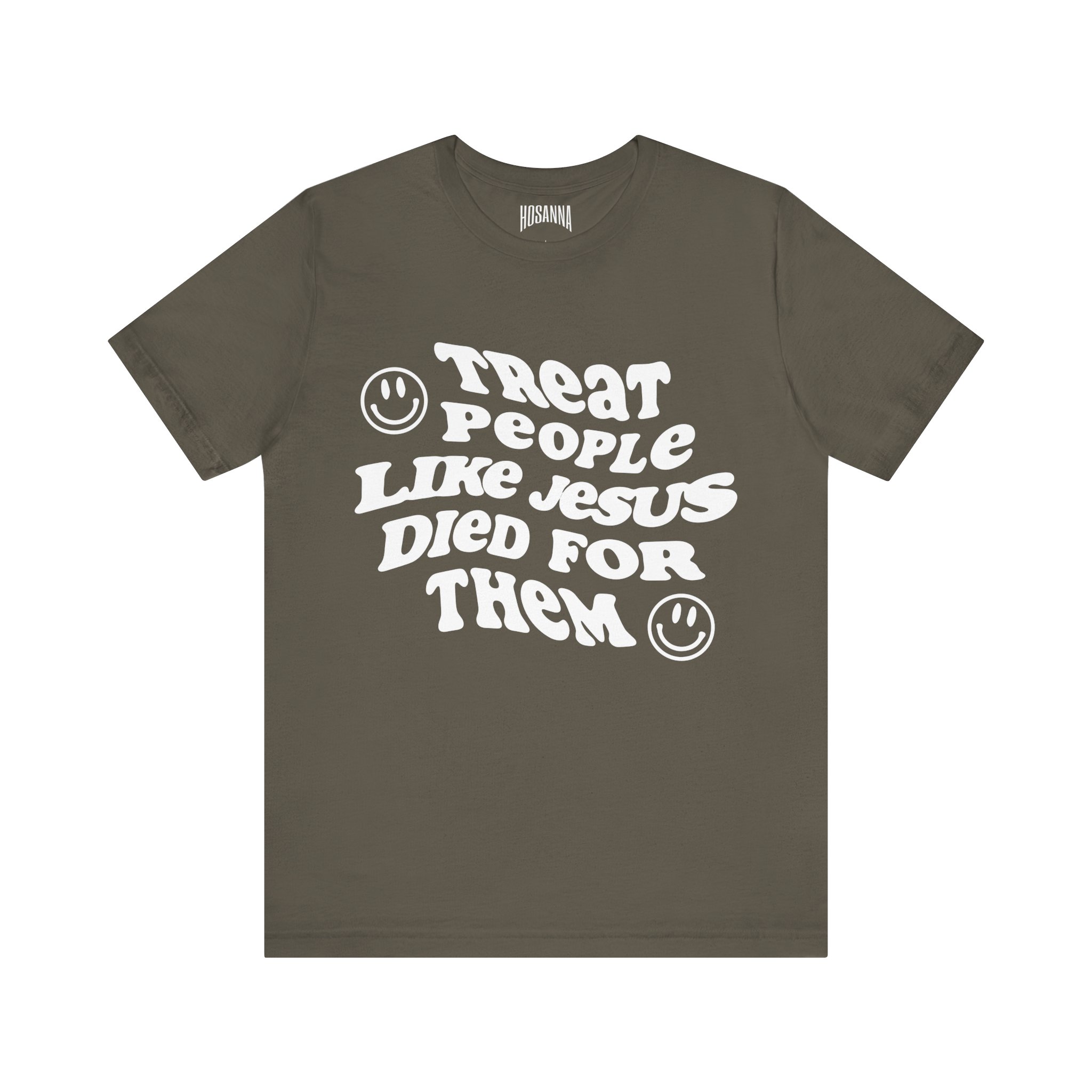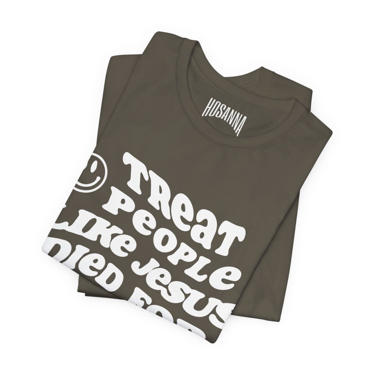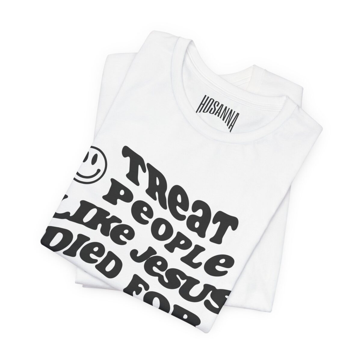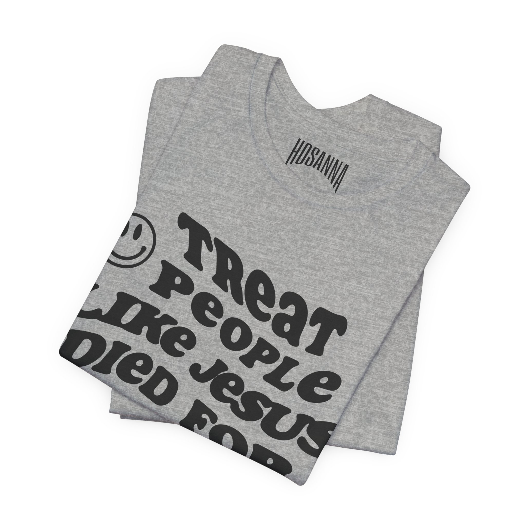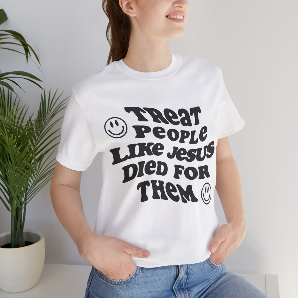 A reminder to embody Christ’s love, the “Treat People Like Jesus Died for Them” Short Sleeve Tee encourages kindness and empathy in every interaction. With a fun, casual design, it’s perfect for spreading love.