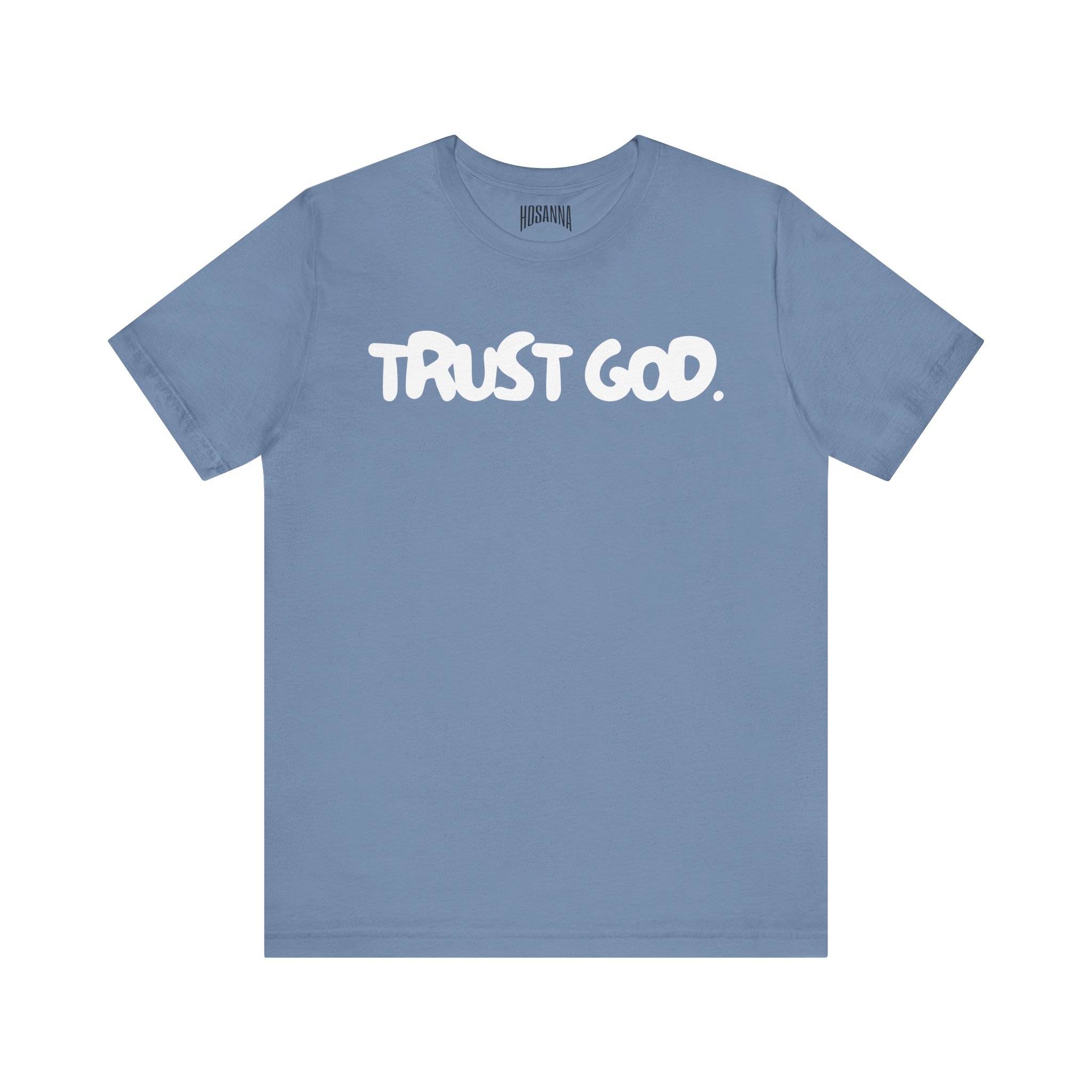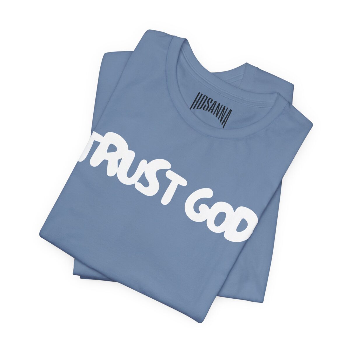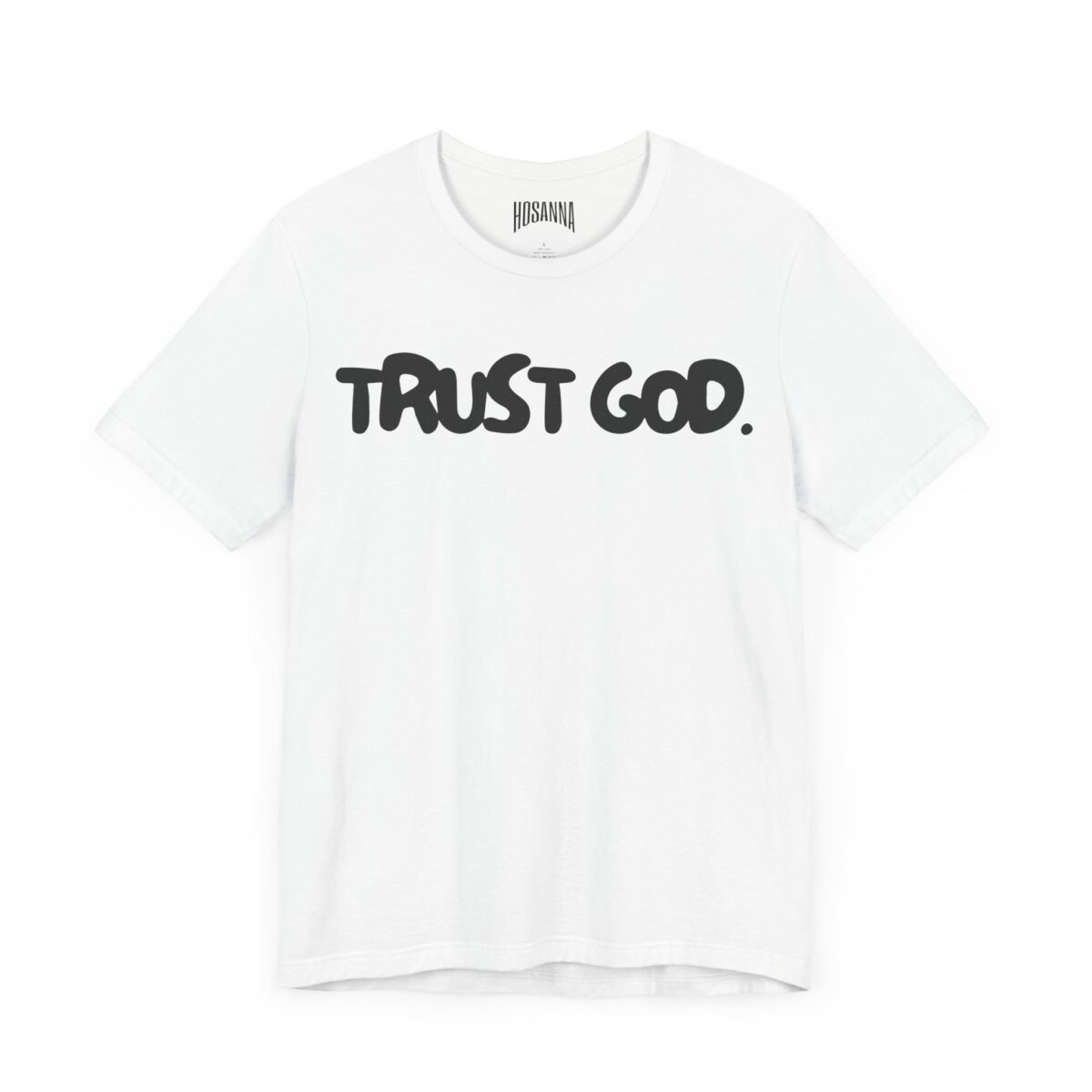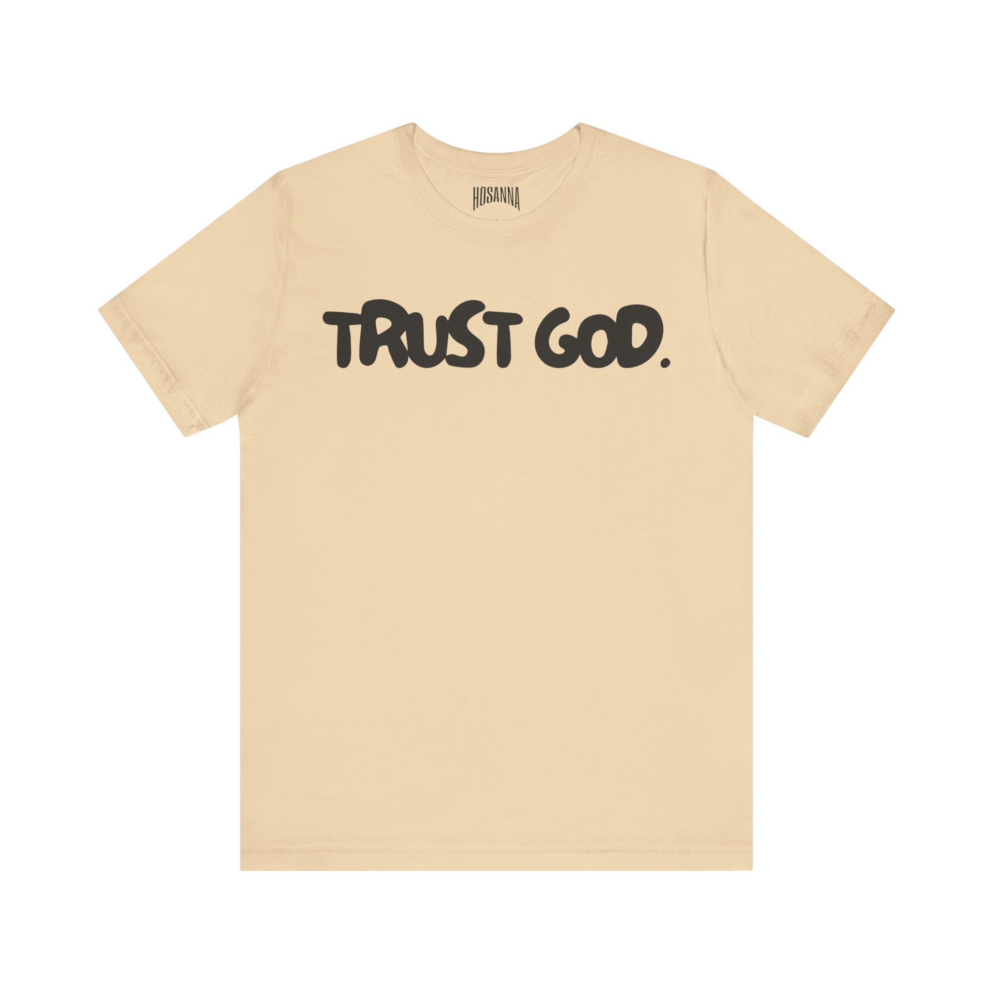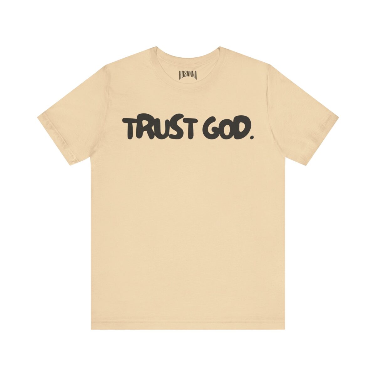 This tee features a minimalist and powerful message: “Trust God.” The simple, bold typography conveys strength and faith, reminding you to lean on God in every situation. Perfect for those who value simplicity with meaning.