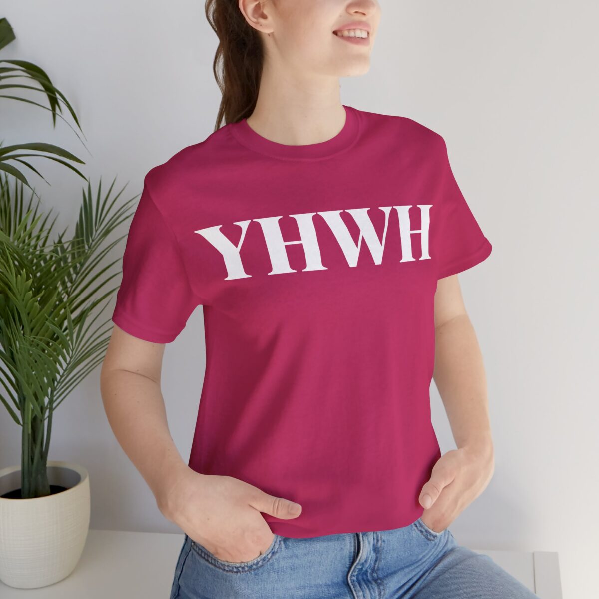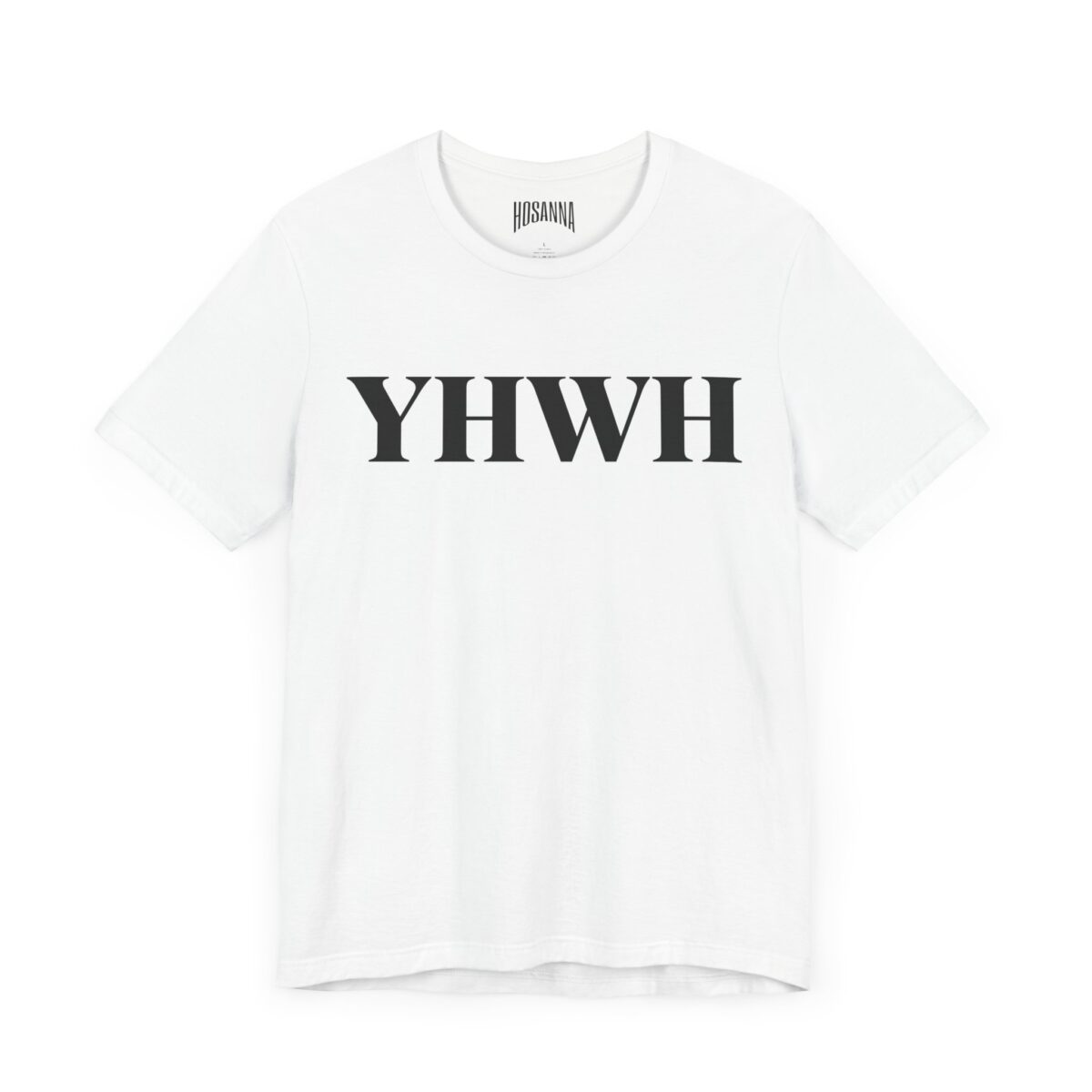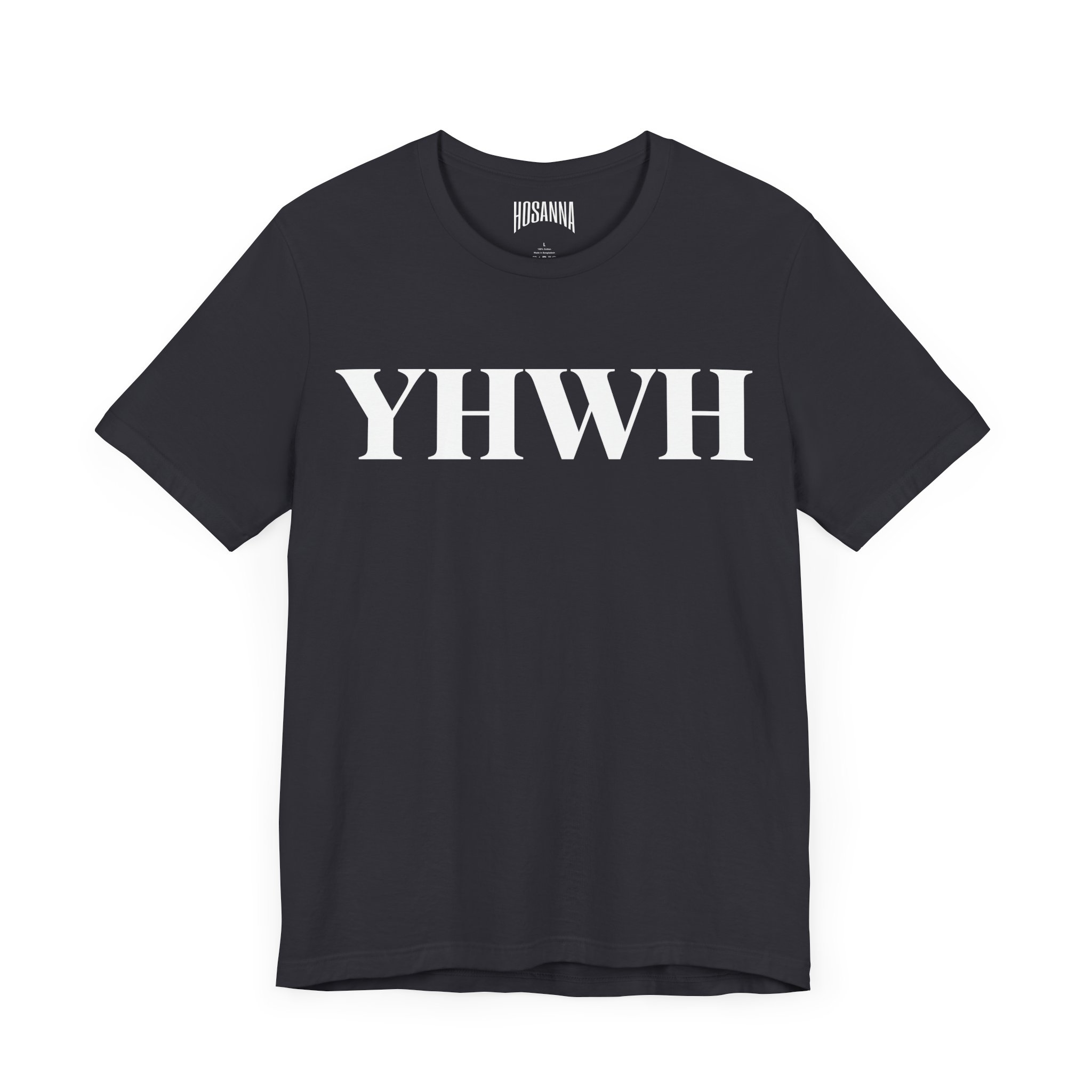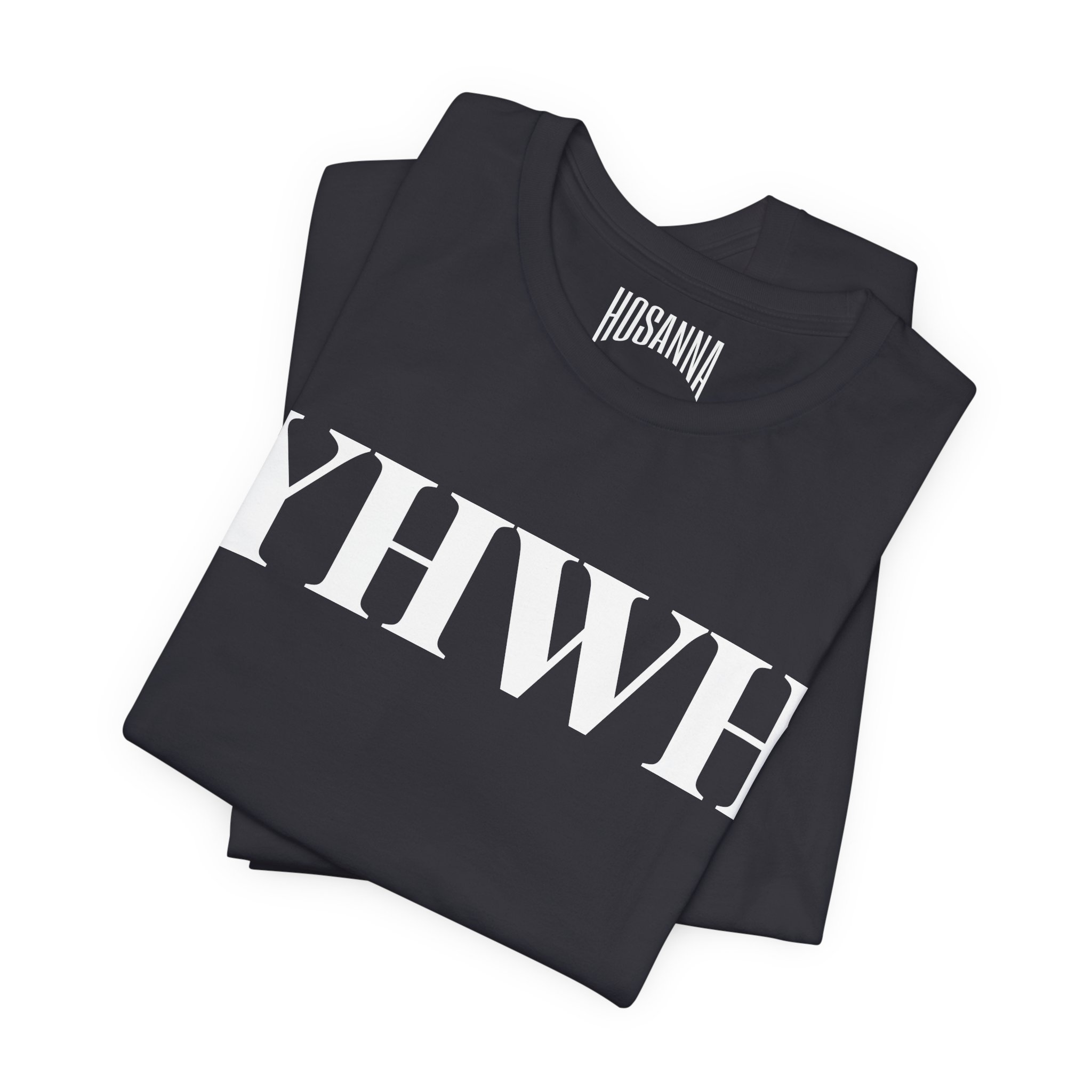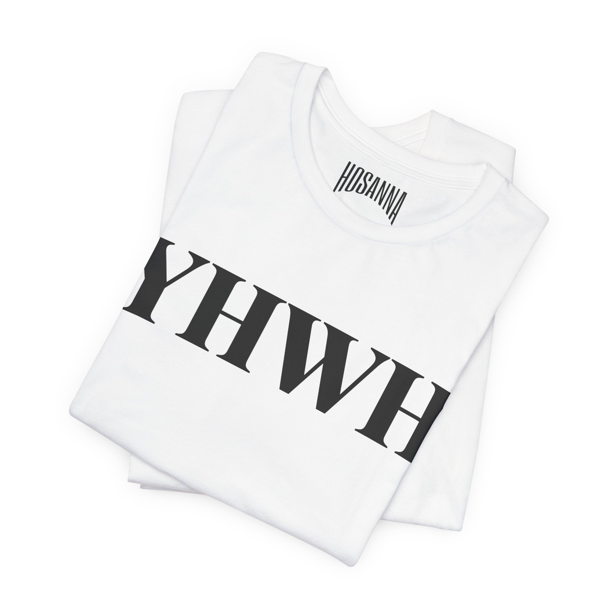 A simple and bold design that centers around the sacred name “YHWH,” a declaration of faith in its purest form. The classic black typography makes this tee a powerful testament to your belief.